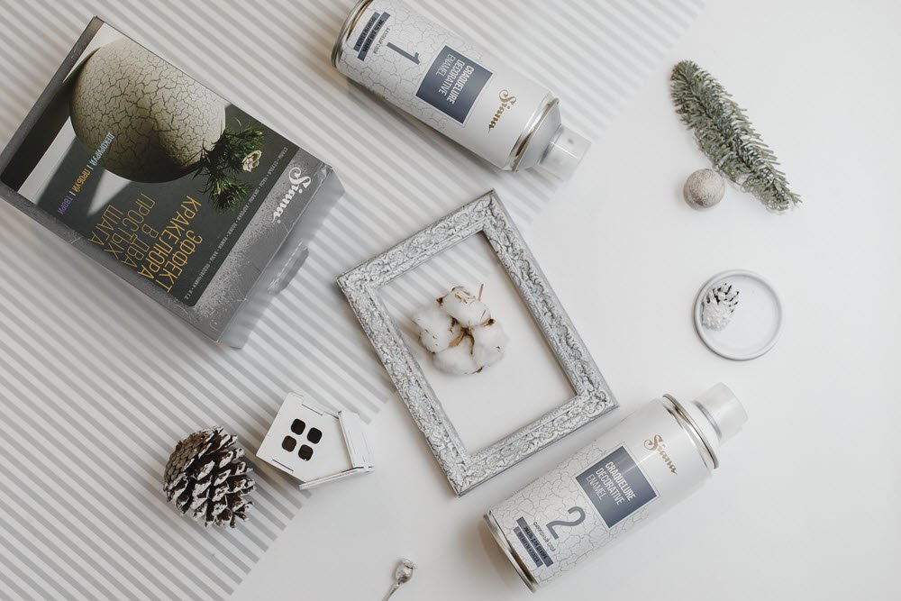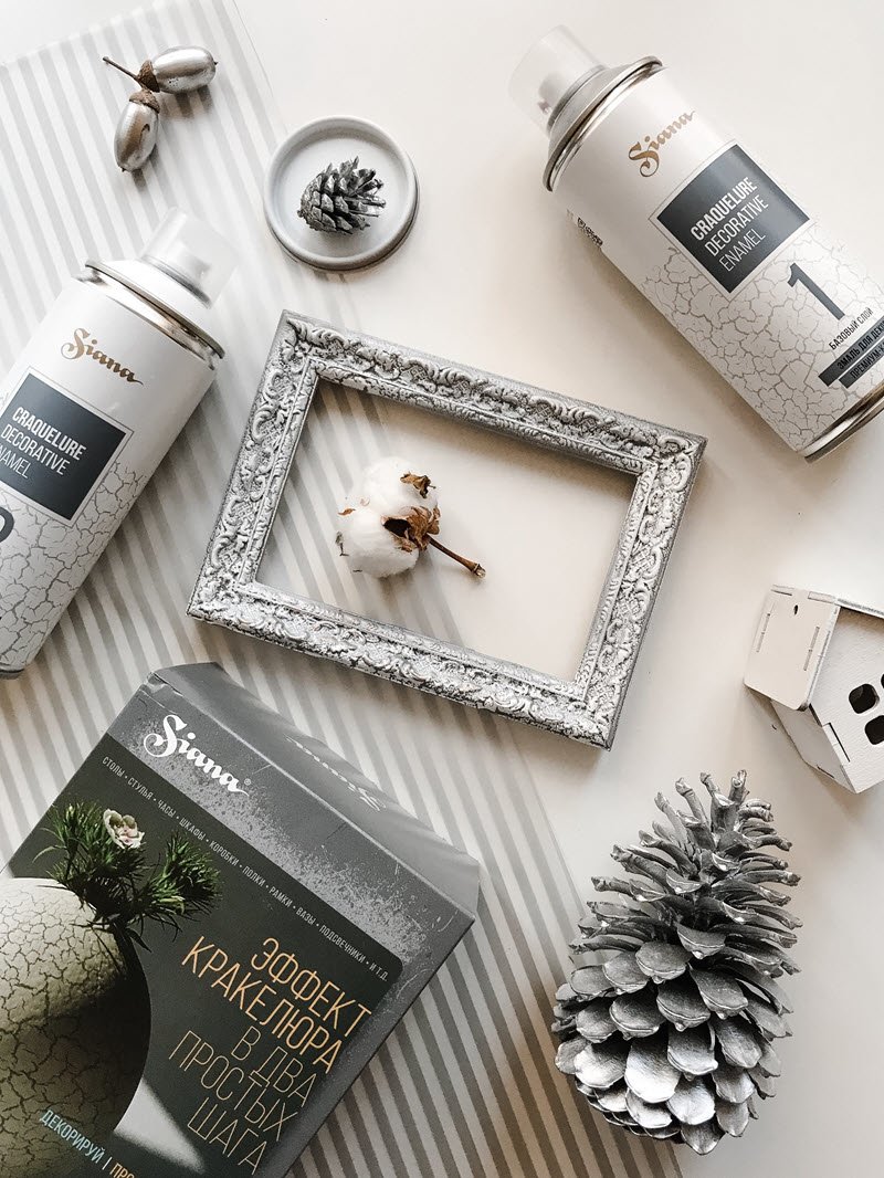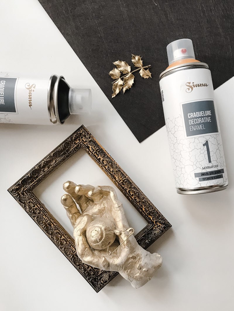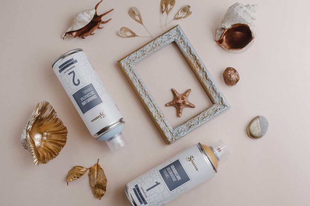 Важно! Трещины образуются только при использовании одновременно двух баллонов Siana Craquelure Base coat (базовый слой) и Siana Craquelure Top coat (финишный слой).
